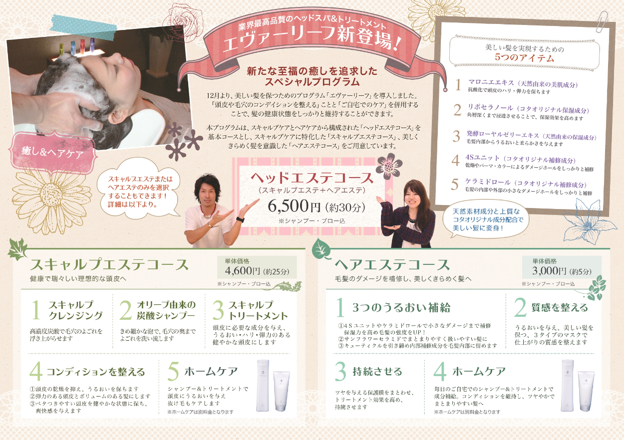 美容室の新メニューである「ヘッドスパ」を、お店に来たお客様へアピールするためにニュースレターを作成したいとのことで、レイアウト・デザイン・文章などを担当いたしました。(個人受注の案件です)