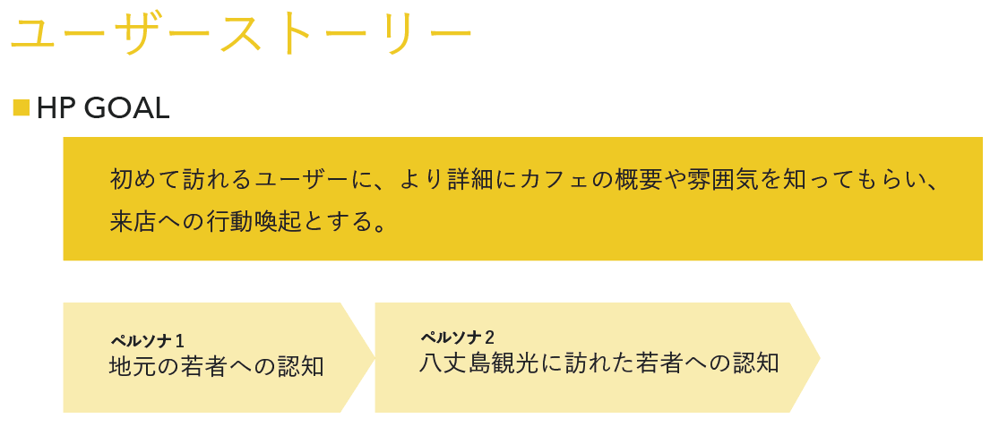 サイトのゴールとターゲットを下記に設定し、ペルソナとユーザーストーリー分析を通した戦略的なHP設計を提案しました。