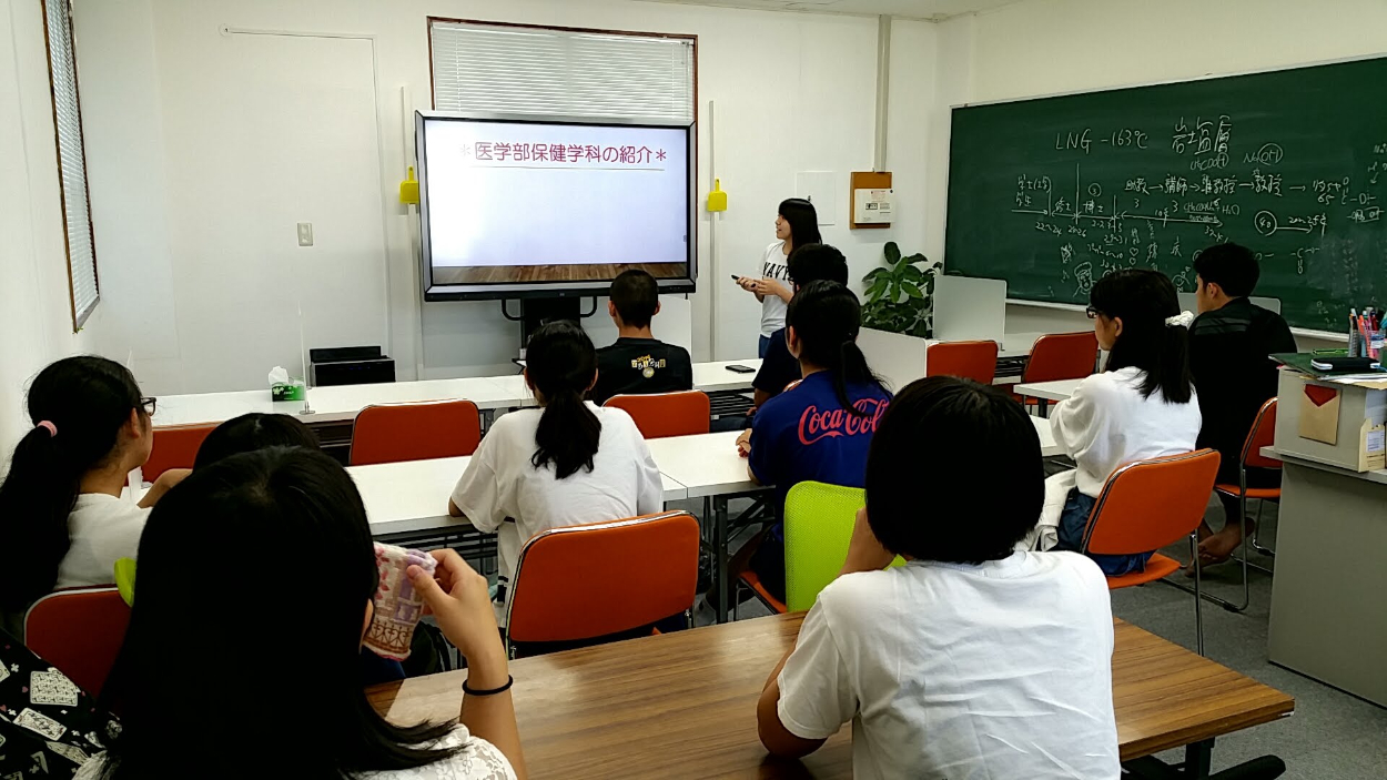 前籍校時代に、宮古高校初の琉球大学医学部へ現役合格を果たした先輩2人が、宮古高校で凱旋講話。塾生を連れて行って交流。