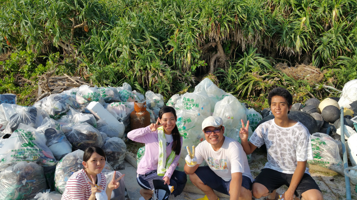 浪人生を連れてのビーチクリーン。「こんなにゴミが落ちてると知らなかった」という浪人生の言葉に、宮古島の課題を感じ始める。