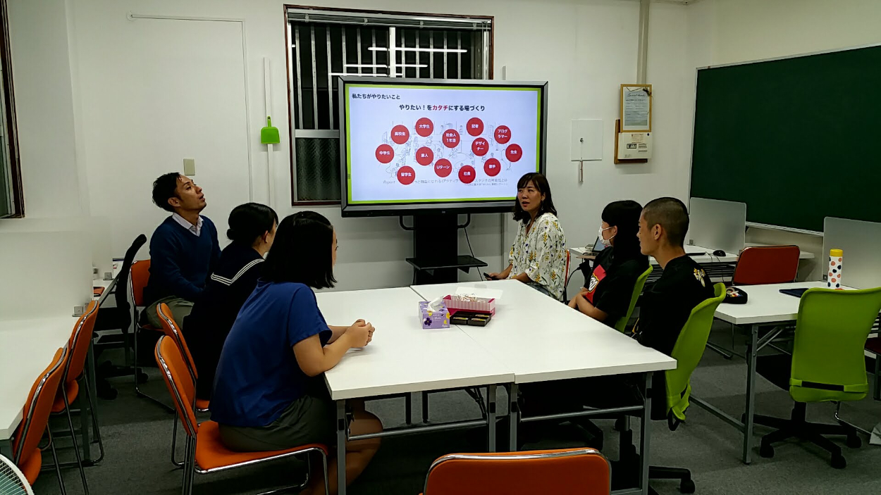市の人材育成事業に関わるマエザトシュウヒコさん、佐和田はるかさんをお招きしてのトーク