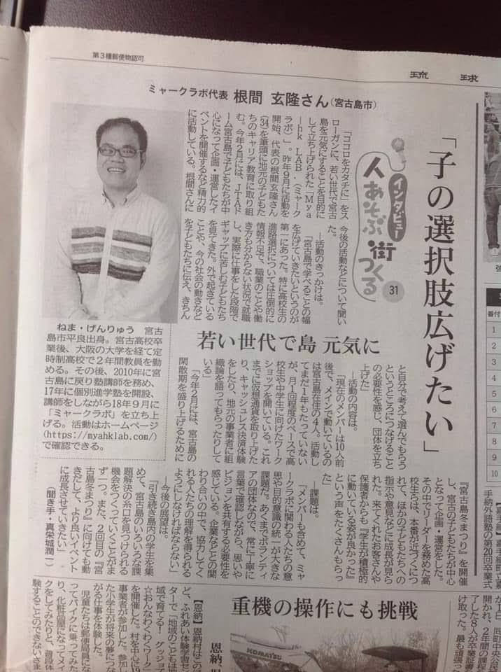 個別進学塾Root 開校。宮古島の高校生に合った料金体系とカリキュラムで、スタートの成績に関わらず、琉球大学をはじめとする国公立大学に合格させられる塾を目指す。