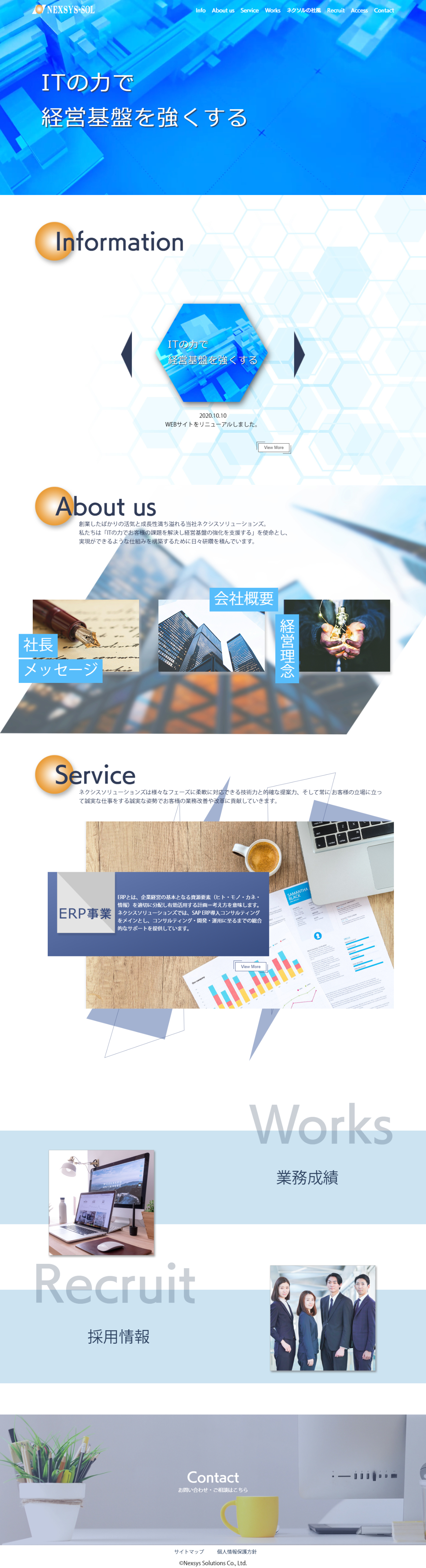 IT企業 株式会社ネクシスソリューションズ(https://e-nexsys-sol.com/)のサイトリニューアルにあたり、サイトデザインを作成しました。