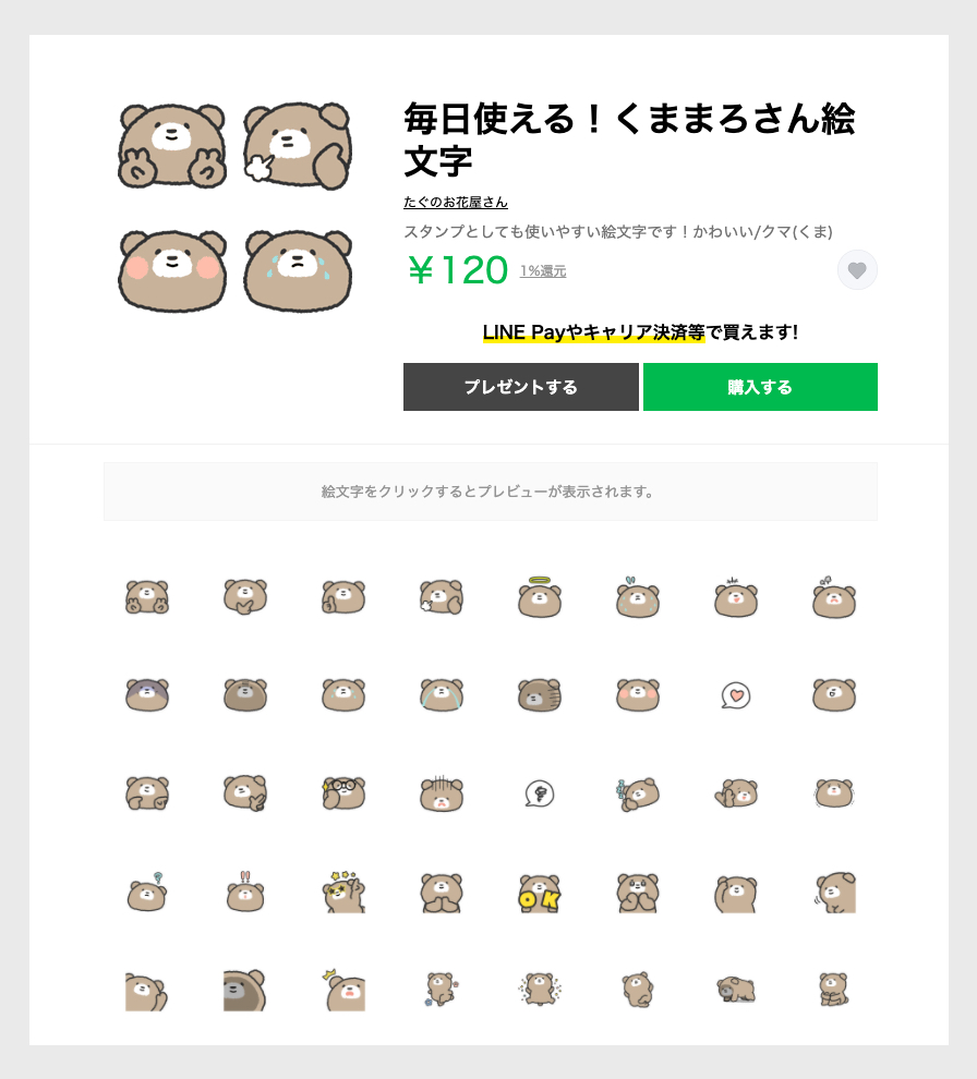 LINE絵文字 『毎日使える!くままろさん絵文字』