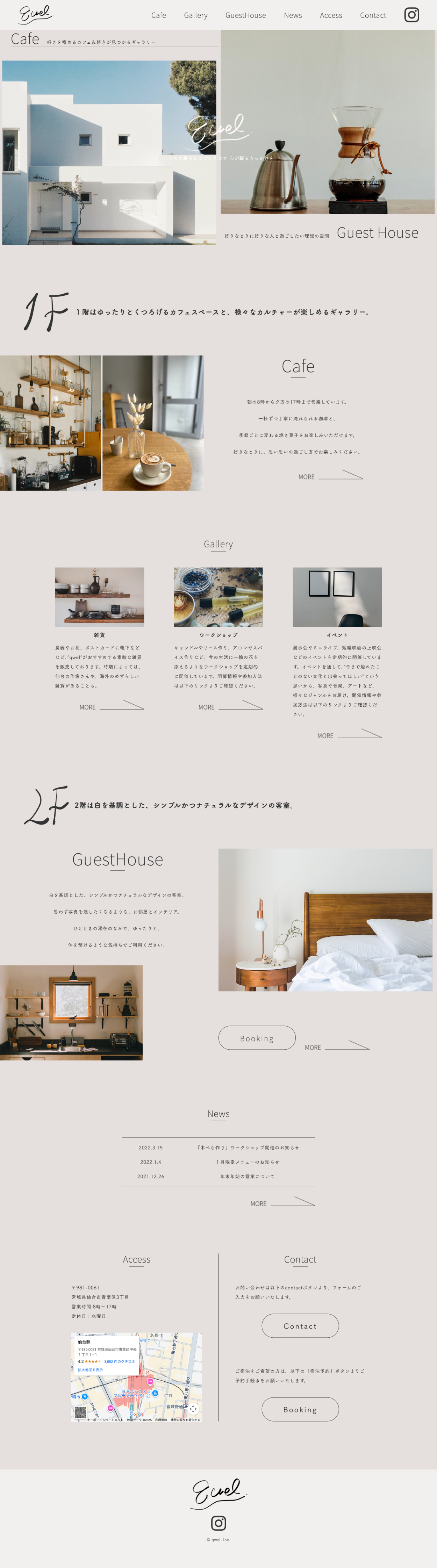 カフェ・ギャラリー・ゲストハウスを併設した架空ショップ「quel」の公式LPを制作する。