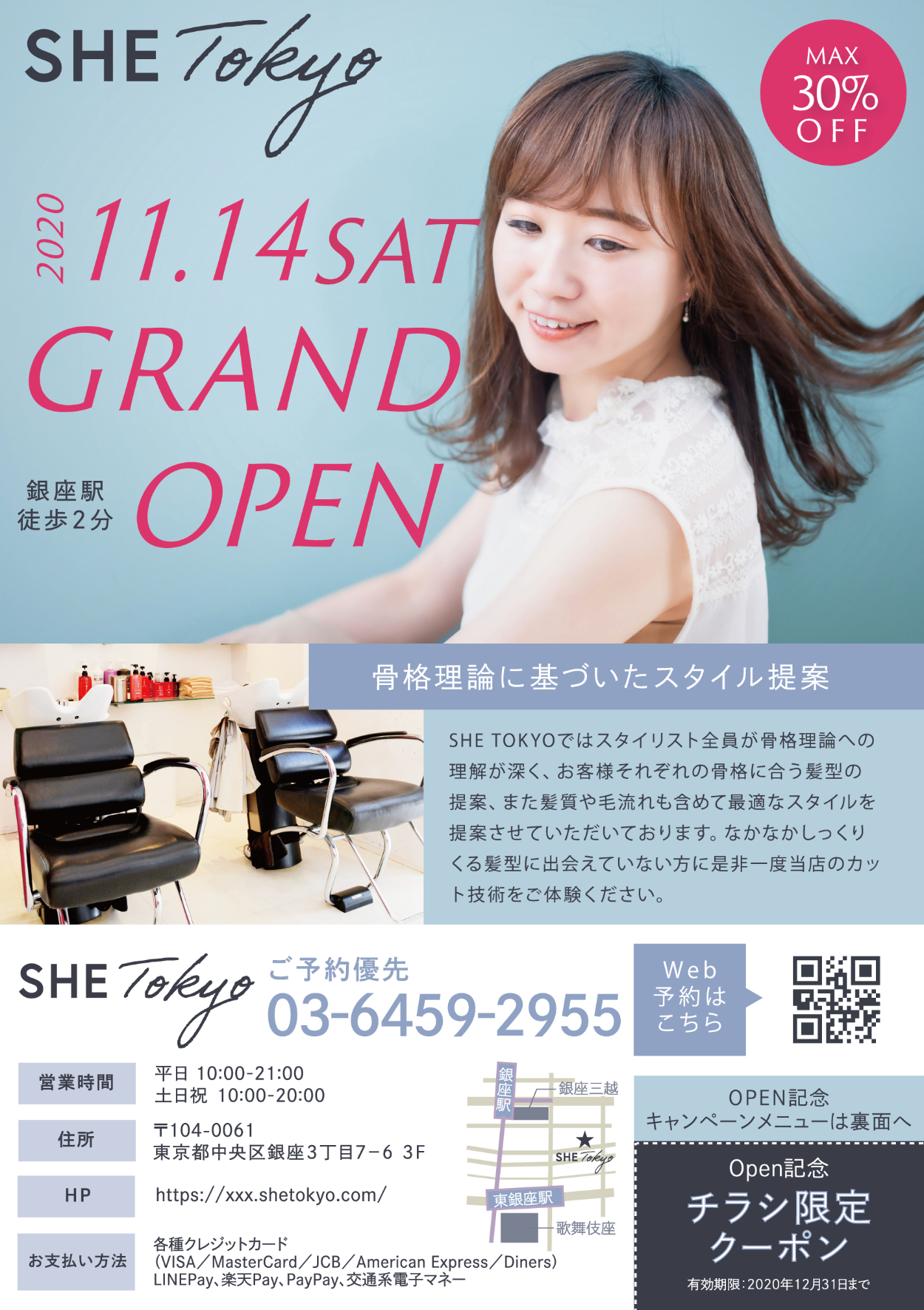 架空案件として美容室の新規オープン時のポスティング用チラシ制作(A5表裏)をしました。 制作期間:1週間