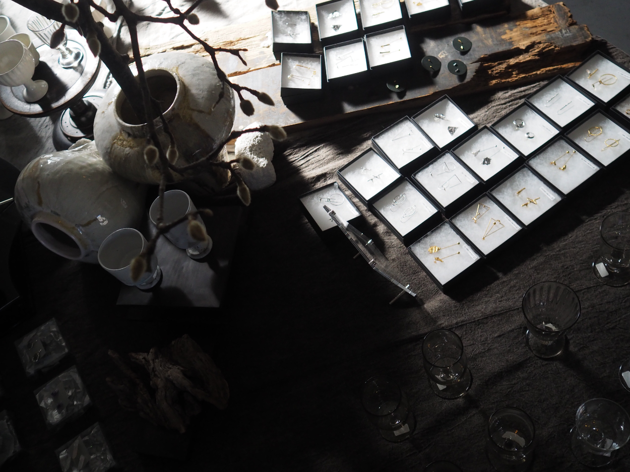 静岡手創り市主催の展示会「ワイングラスと耳飾り」での作品説明用のキャプションカード。