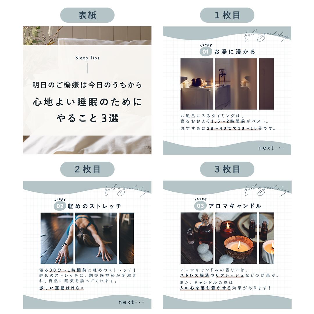 ・ステップ1.2.3は実際に取り組みやすいように、睡眠に入るまでの順番で作成。