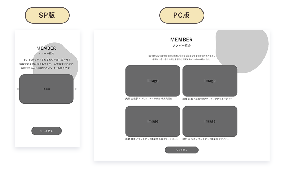 また、メンバー紹介の画像をPCサイズでは2×2で配置してしていましたが、