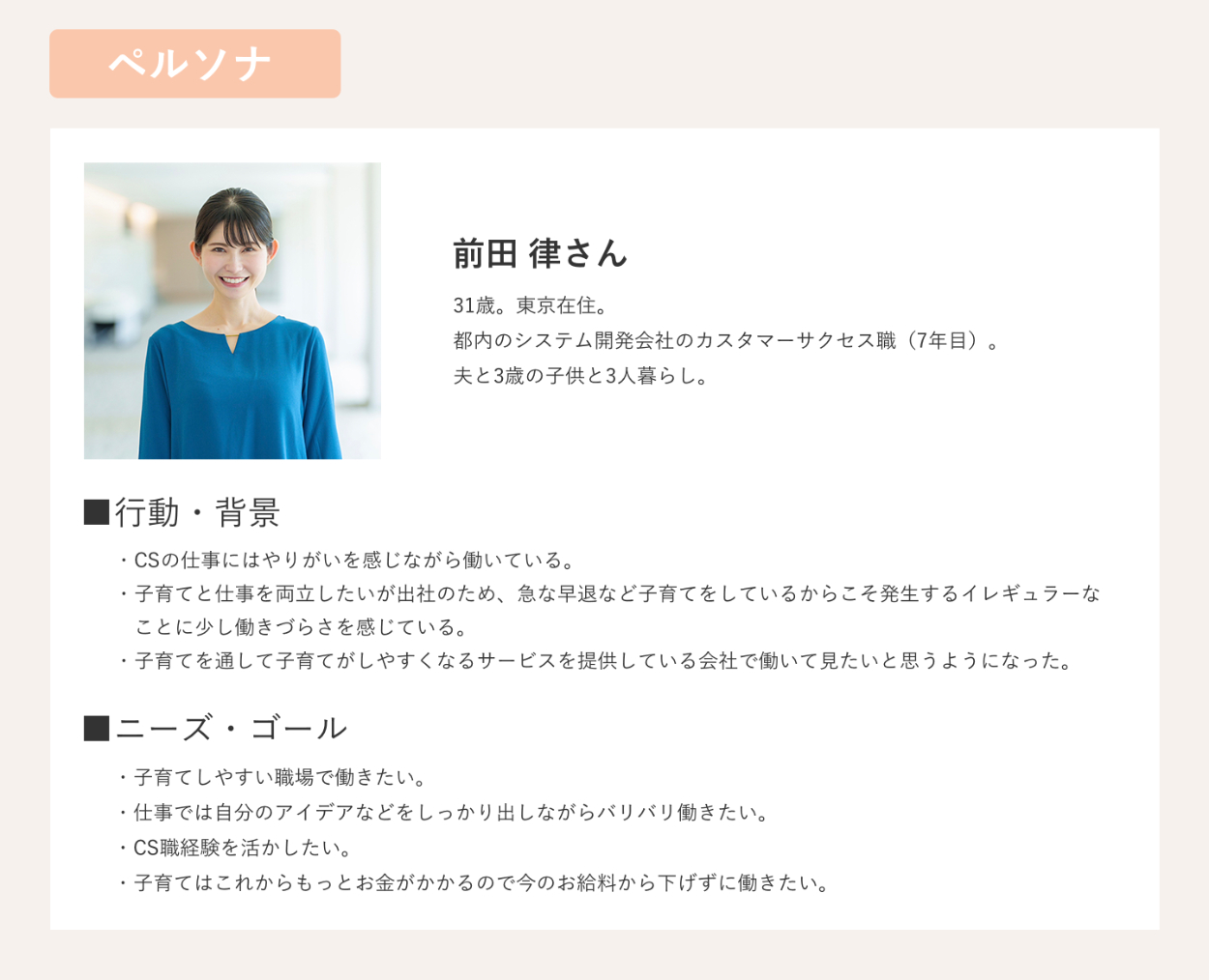 LPの制作目的やターゲットから、ペルソナを作成しました。