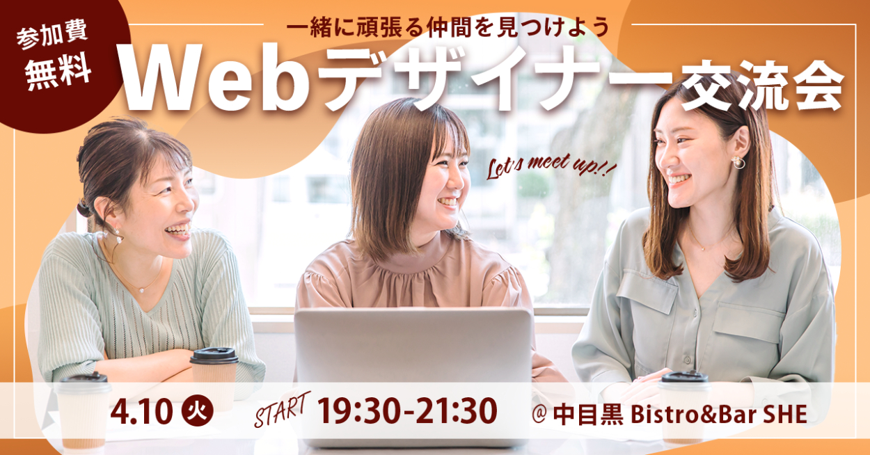 ②文字について:ジャンプ率を意識し、目立たせたい「無料」「webデザイナー交流会」 の文字サイズに変化をつけています。