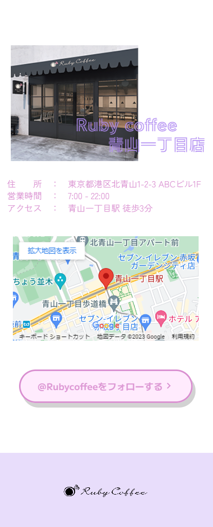 - 店舗情報は見やすさを第一優先にし、文字間を揃えたり左詰めにしたりして工夫した。