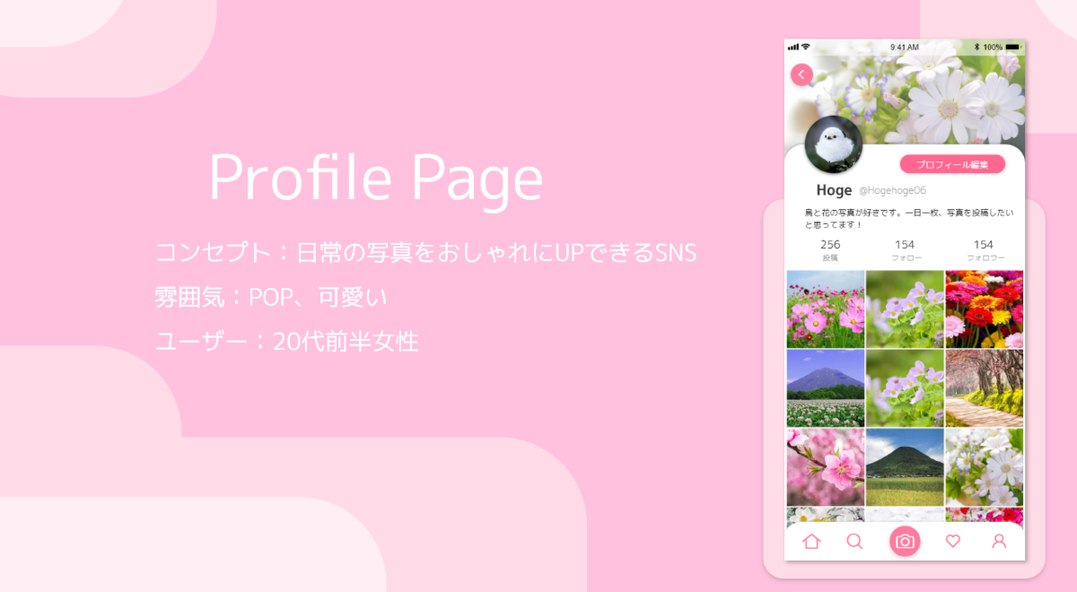 ゴチャゴチャしてしまうと見づらくなってしまうので情報量はなるべく少なく、SNSに必要な最低限の機能にしました。