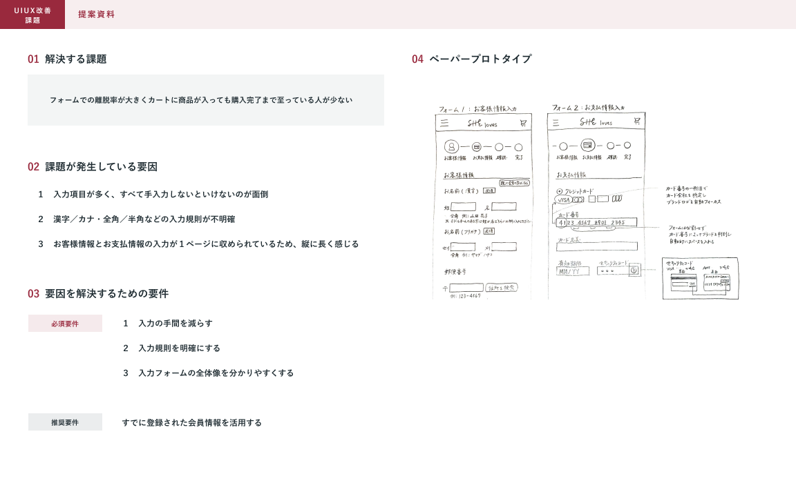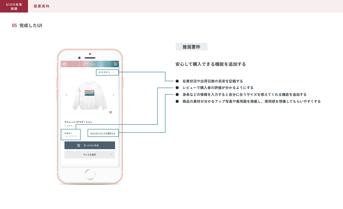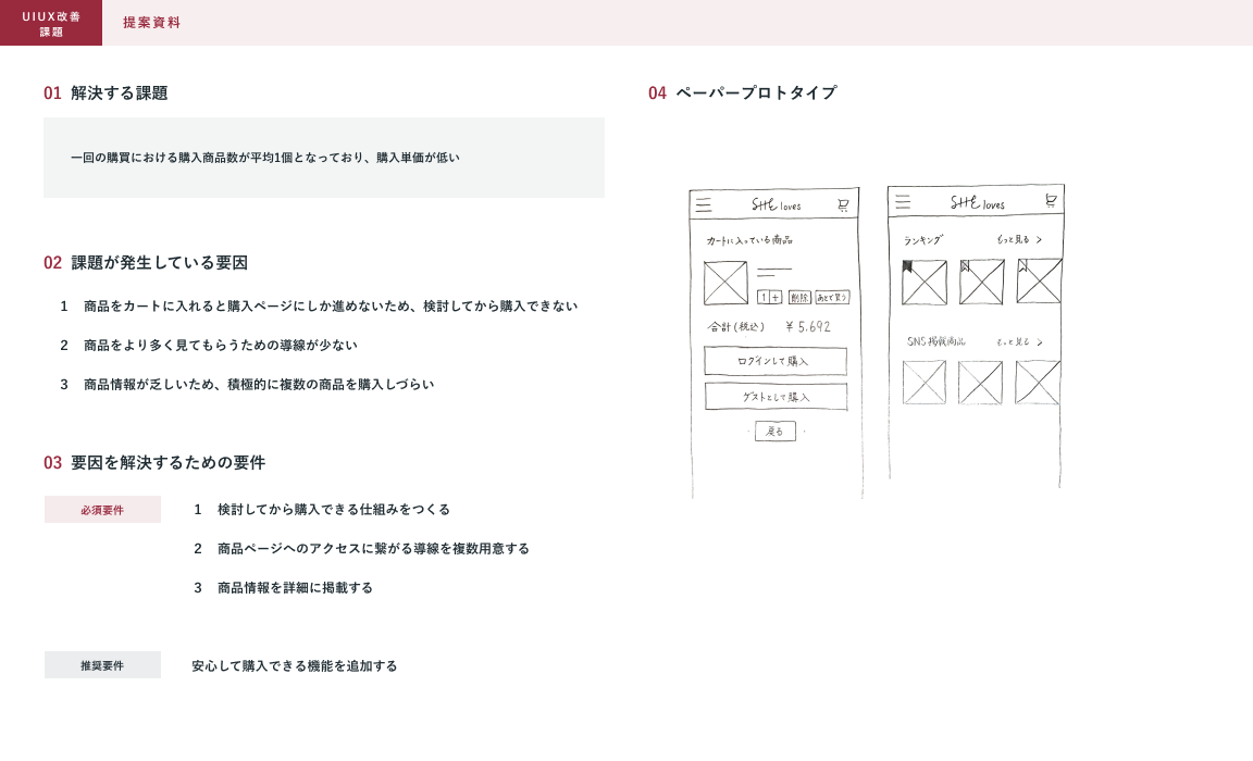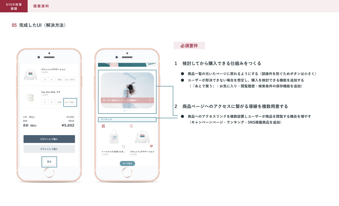 【SHElikes MULTI CREATOR COURSE 課題6:UIUX改善】架空のECサイトにおける課題の要因を特定し、改善のためのUIUXを提案しました。