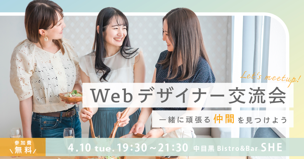 ・タイトルである「Webデザイナー交流会」を大きく、色い帯を引いて情報を目立たせることを意識しました。