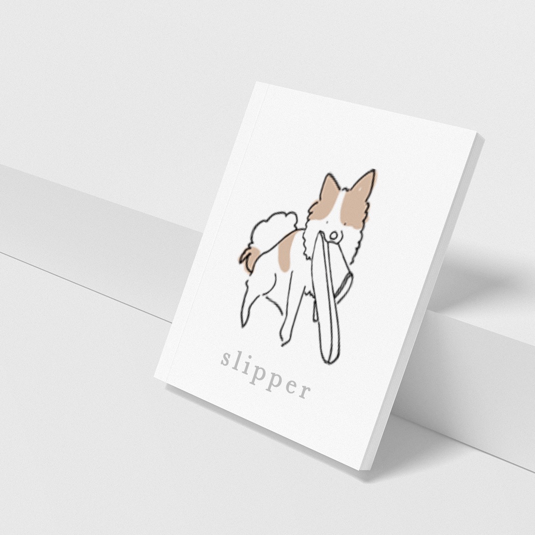 スリッパを噛んだいたずら好きなワンちゃんのイラストを制作しました! 愛犬のイラスト制作はもちろん、ご家族やご友人へのプレゼントととしてもおすすめです◎ ステッカー・ポスター・トートバッグ等、お好きなツールに展開も可能です!