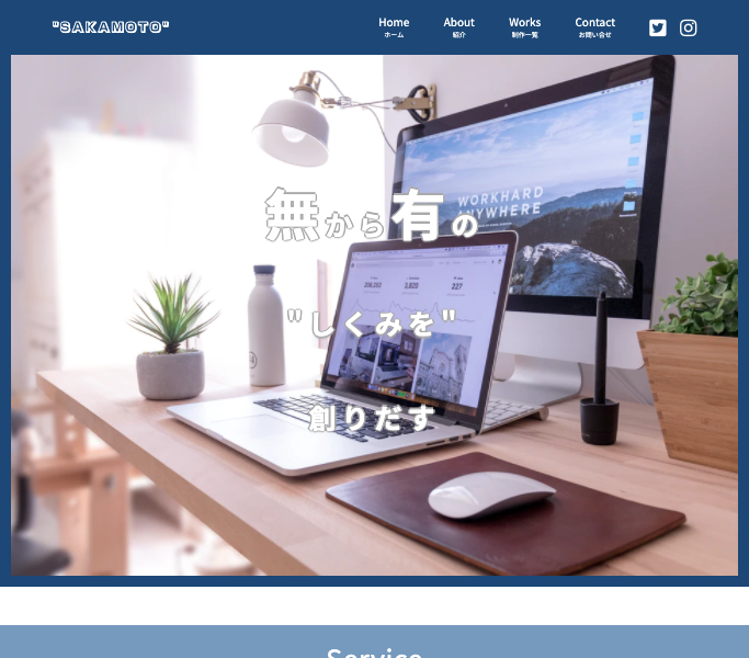 “SAKAMOTO” SAKAMOTO@Web制作 Webコーダー OVERVIEW ポートフォリオサイト YEAR 2021 “Webデザイン” / “HTML & CSS” / “JavaScript” (jQuery) / “WordPress” /私のポートフォリオです。他実績もですが、既存テーマを使用せずオリジナルテーマで制作しました。 WEBSITE