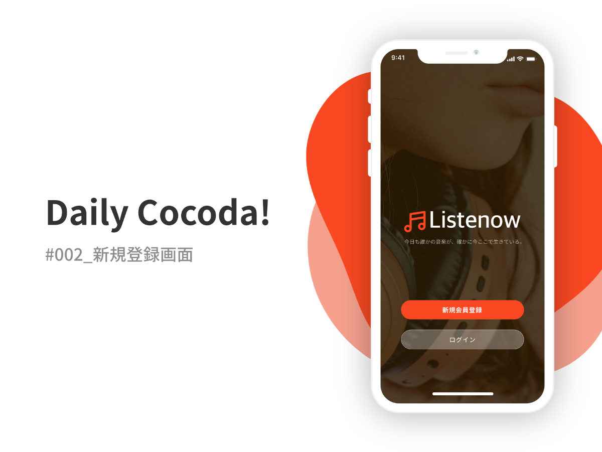 Daily Cocoda! #002 新規登録画面 岡田よしひろ webデザイナー/UIデザイナー OVERVIEW ◼︎誰向け - オシャレ好きな男子大学生 ◼︎コンセプト - 好みの音楽がレコメンドされる音楽アプリ ◼︎雰囲気 - カジュアル/オシャレ