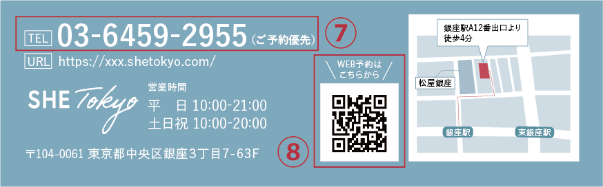 ⑧WEB予約も簡単にできるよう、QRコードを配置した。