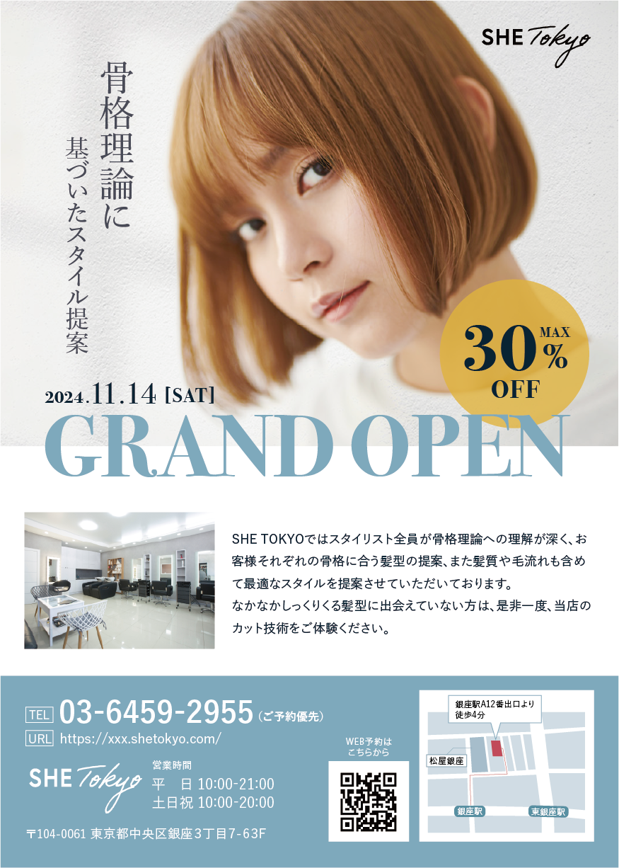 【自主制作】ヘアサロンの新規オープンキャンペーンチラシ