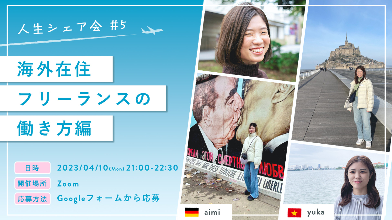 aimiさん主催の「人生シェア会 -フリーランスの働き方編-」のバナー制作のご依頼をいただき、Twitterやメルマガ配信での告知バナーとしてご活用いただきました。