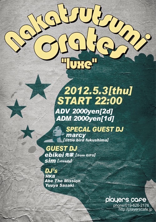 岩手県盛岡市で開催されたDJイベント「Nakatsutsumi Crates」のフライヤーを制作しました。