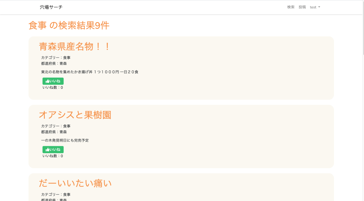 一つ一つの項目での検索なら比較的簡単にできたが複数項目での検索には入れ子形式で実装すべきなのか、それとも場合分けを全通りしていかなければいけないのかなど色々考えさせられた。検索時の情報を保存するためにセッションを使ったこと