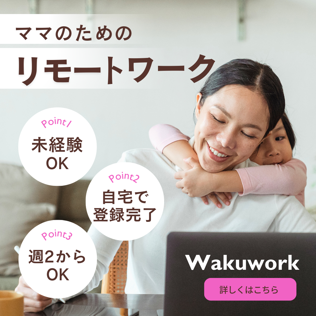 (架空案件)ママのためのリモートワークに関するバナー 寺島 香 Webデザイナー 仮想案件になります。Canvaを使用し、制作時間約90分程度です。子育てママへ向けたリモートワークバナーを作成いたしました。子育て世代に向けたバナーのため、子供と一緒の写真を全面に配置し、アットホームな印象を出すために、茶系の色合いでまとめました。母のやさしさを表現したく、ピンクをアクセントカラーに使用しました。