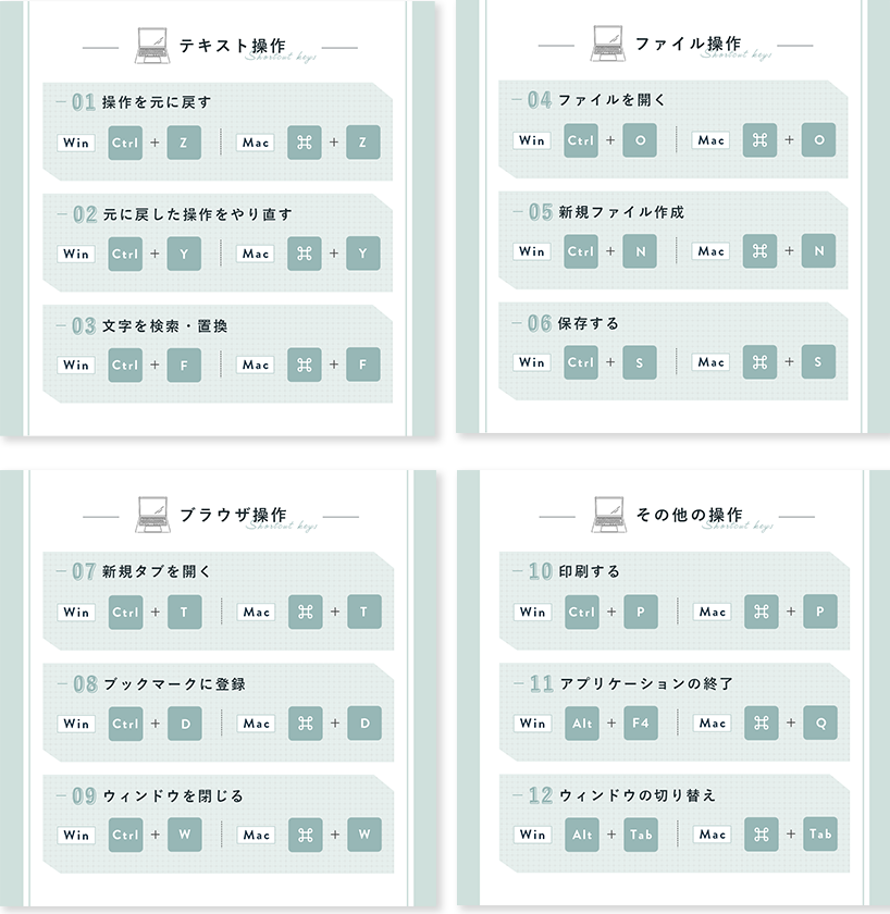 【自主制作】SNS用バナー作成 mutsumi Webデザイナー OVERVIEW ※自主制作でSNS用バナーを制作しました。 YEAR 2024 【目的】・Instagramを通じて女性に刺さるコンテンツを発信したい【ターゲット】・20〜30代の働く女性【デザインイメージ】・大人かわいい【制作したバナー】テーマ:”覚えて損なし!厳選ショートカットキー12選”