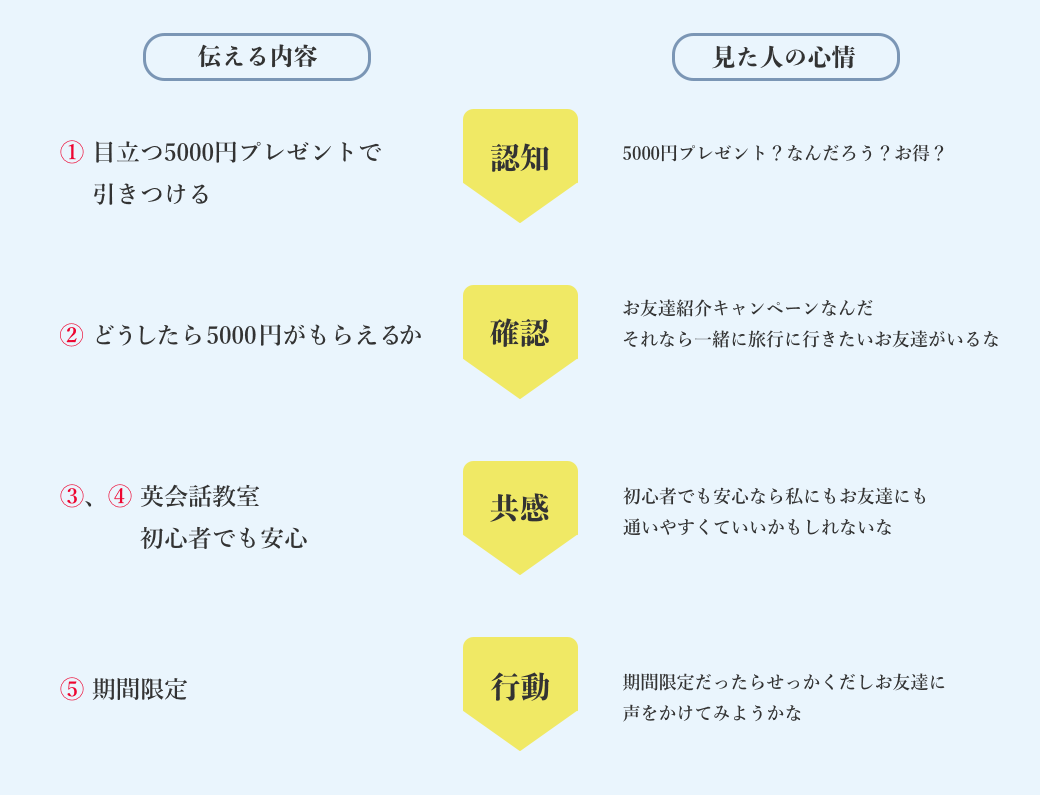 ・「英会話」とふきだしに入れることで英語教室であることへの説明と親近感を