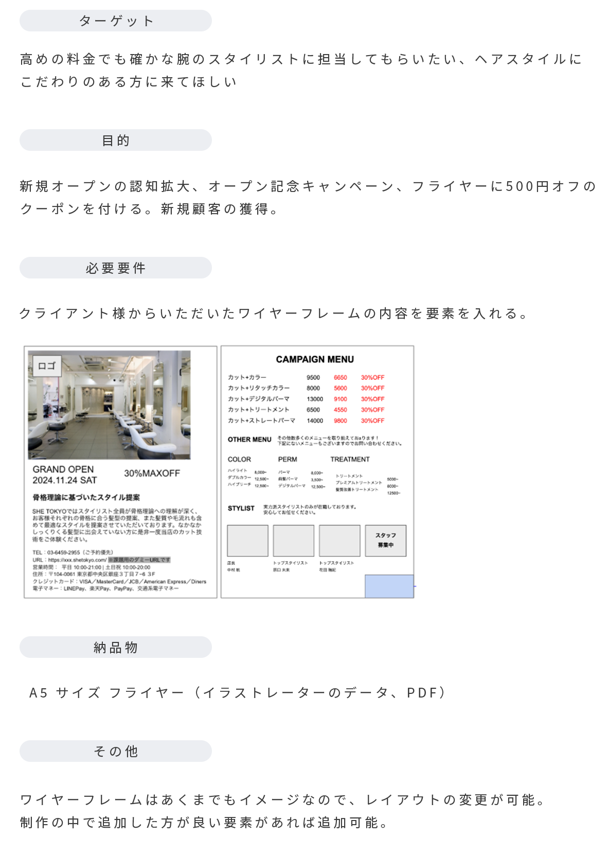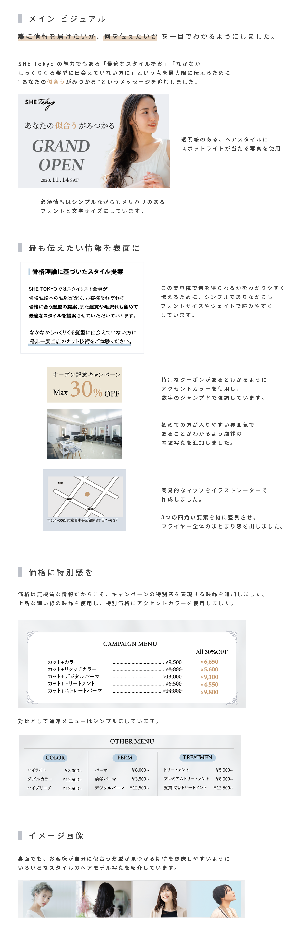 【課題】美容室「SHE Tokyo」のフライヤー制作