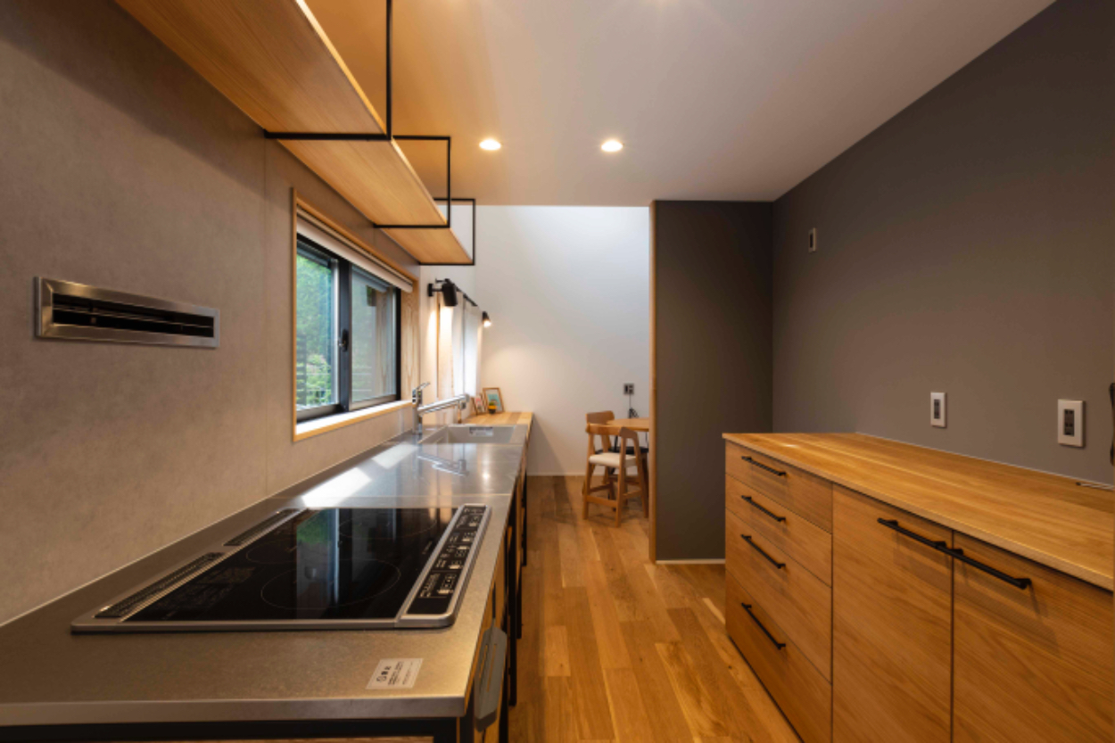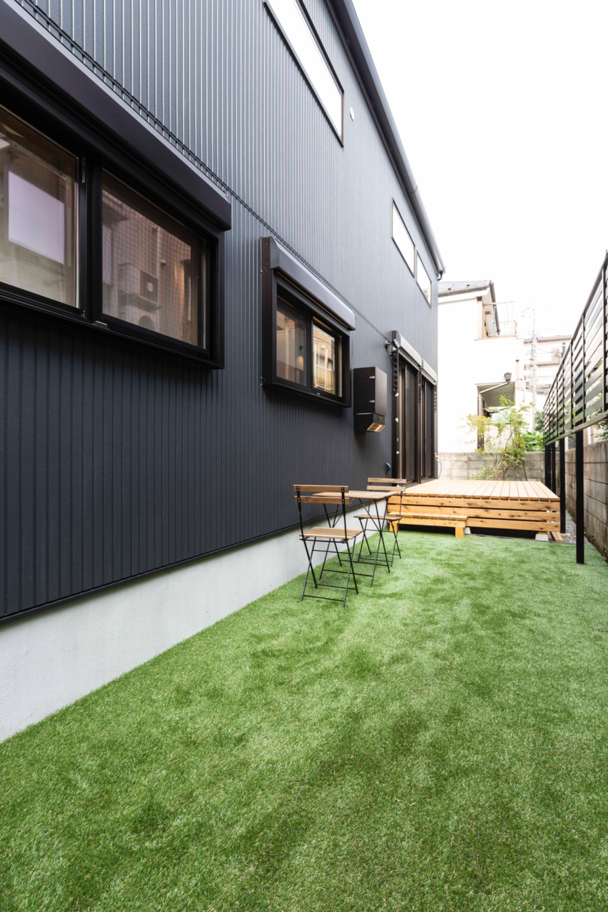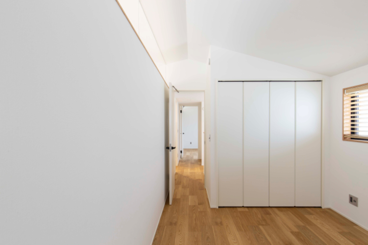 住宅密集地の東西に長い借地で新築住宅を計画した。採光確保のため南側に庭を設け、住宅は可変性を損なわないシンプルな架構とし、子育て世代のオーナー様が現状で必要な空間のみ床を作り、残りは吹抜として積極的な余白とした。家族や家主の変化に伴い、増改築が可能な住み繋げられる空間を模索した。