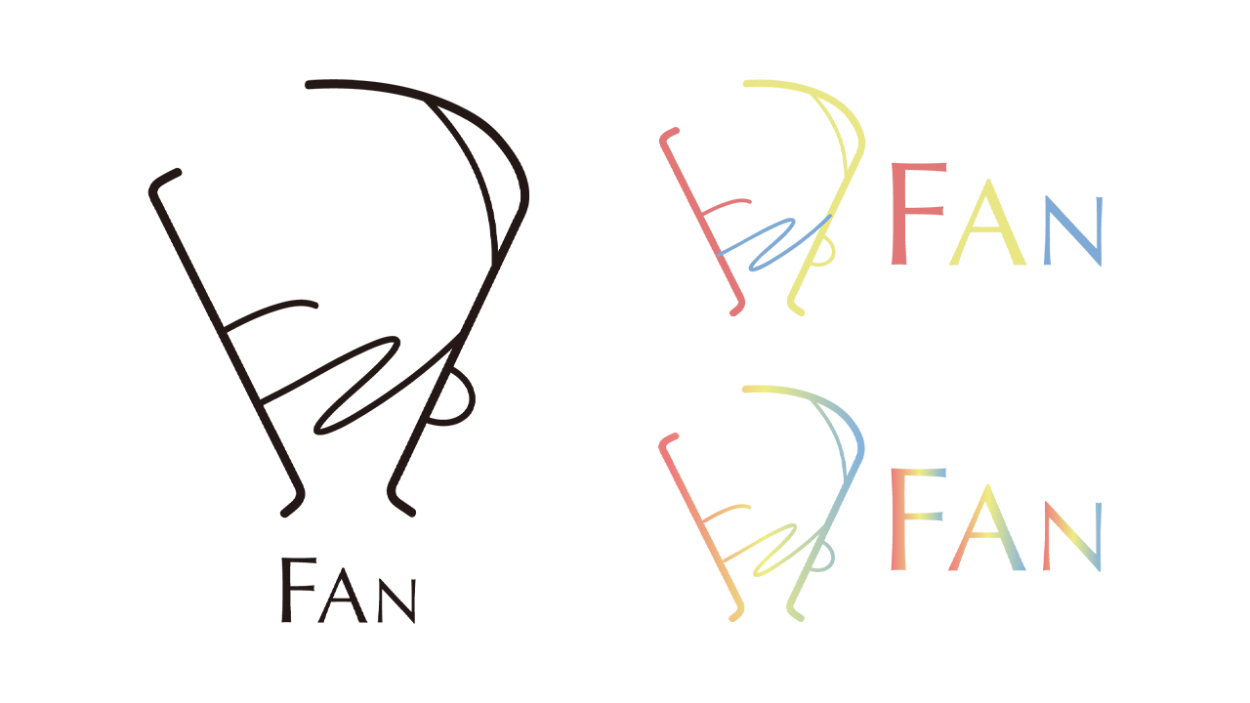 ヒアリング前から自身で考えていたものを共有いただいた。「繋がり」を意識した真ん中の” FAN "。下のメガホンのイラストと英文により、応援したいことをを強調。「広がり」を意識した外枠の円、一部切れていることや数本重ねて動きがあるように見せていることから今後も広がる可能性を表現。「夢を応援」というコンセプト内容をもっと分かりやすく形に出来ないか検討していきました。
