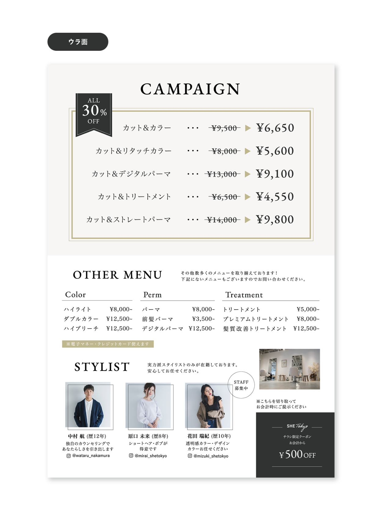架空フライヤー制作(美容室オープン)