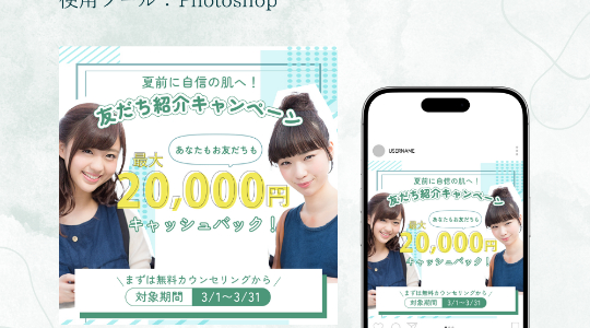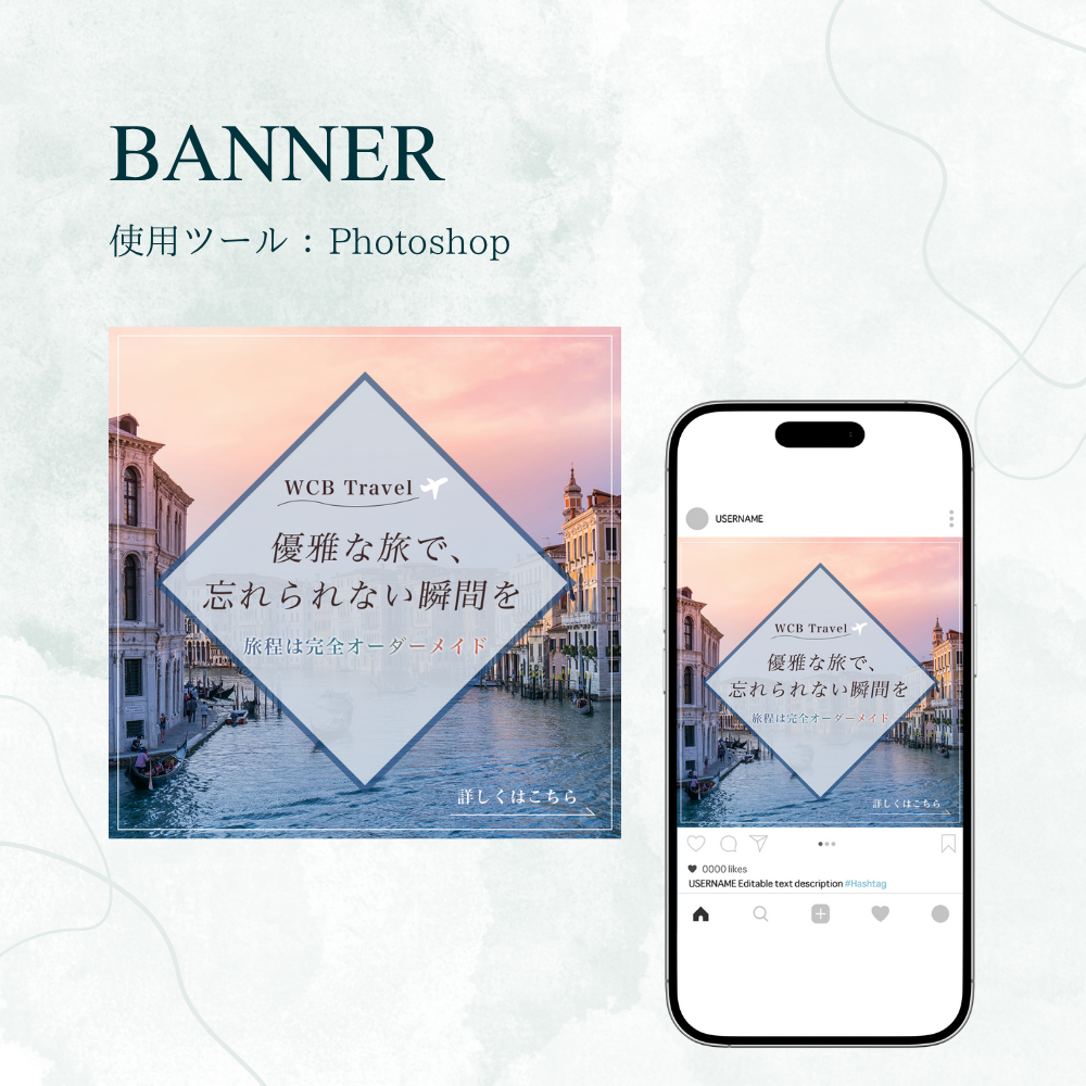 ・写真をしっかりと見せつつ文字の配置もするというところから、文字の後ろの四角は透過して背景の写真も見えるようにしました。