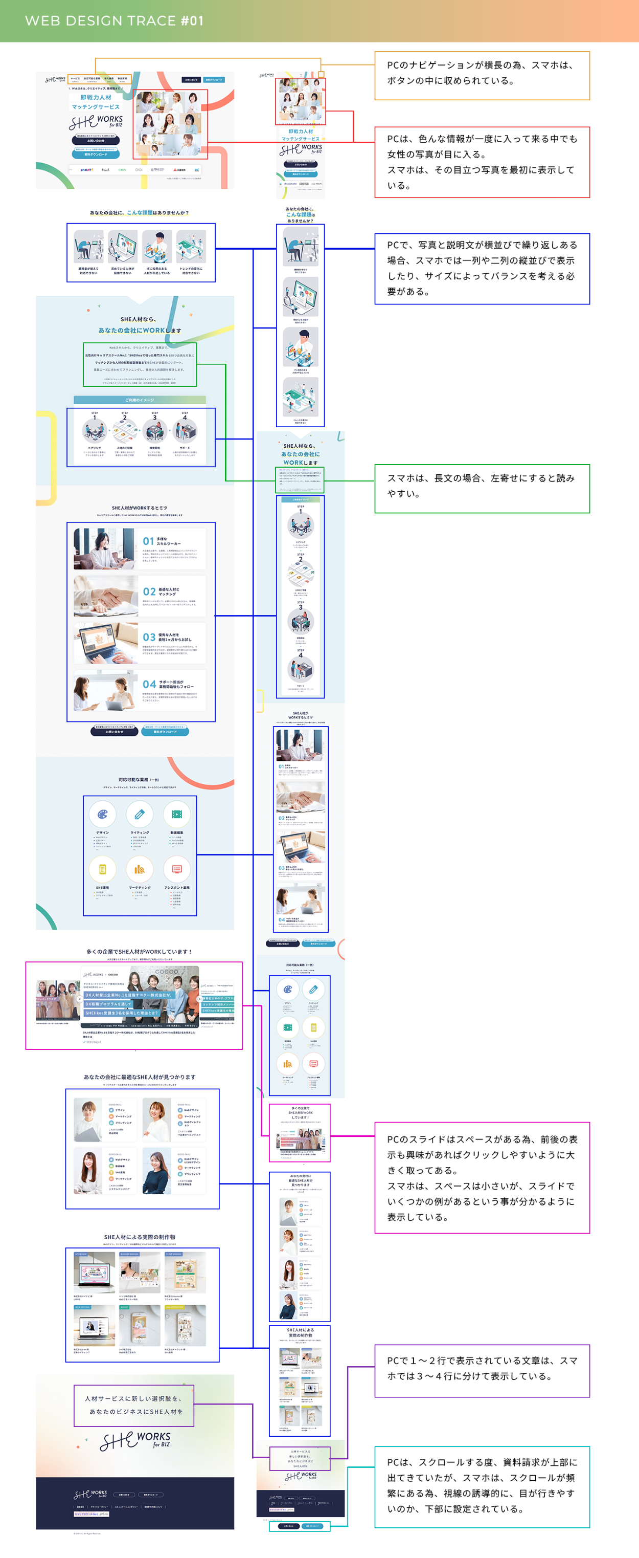 PCとSPの違いについても、デバイスにとって一番読みやすい表示にすることで、離脱率を防げることも学びました。