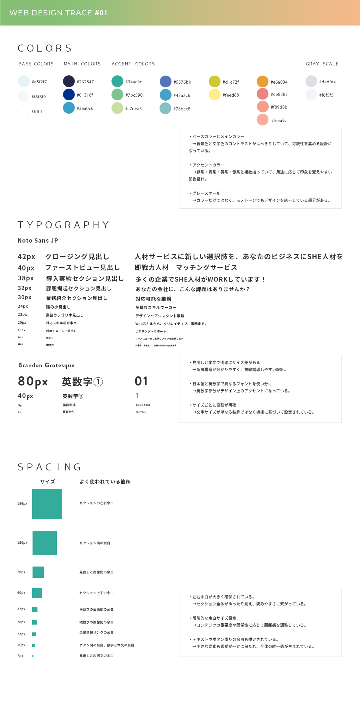 スタイルガイドやタイポグラフィーを作成したことにより、スムーズにトレースする事が出来ました。
