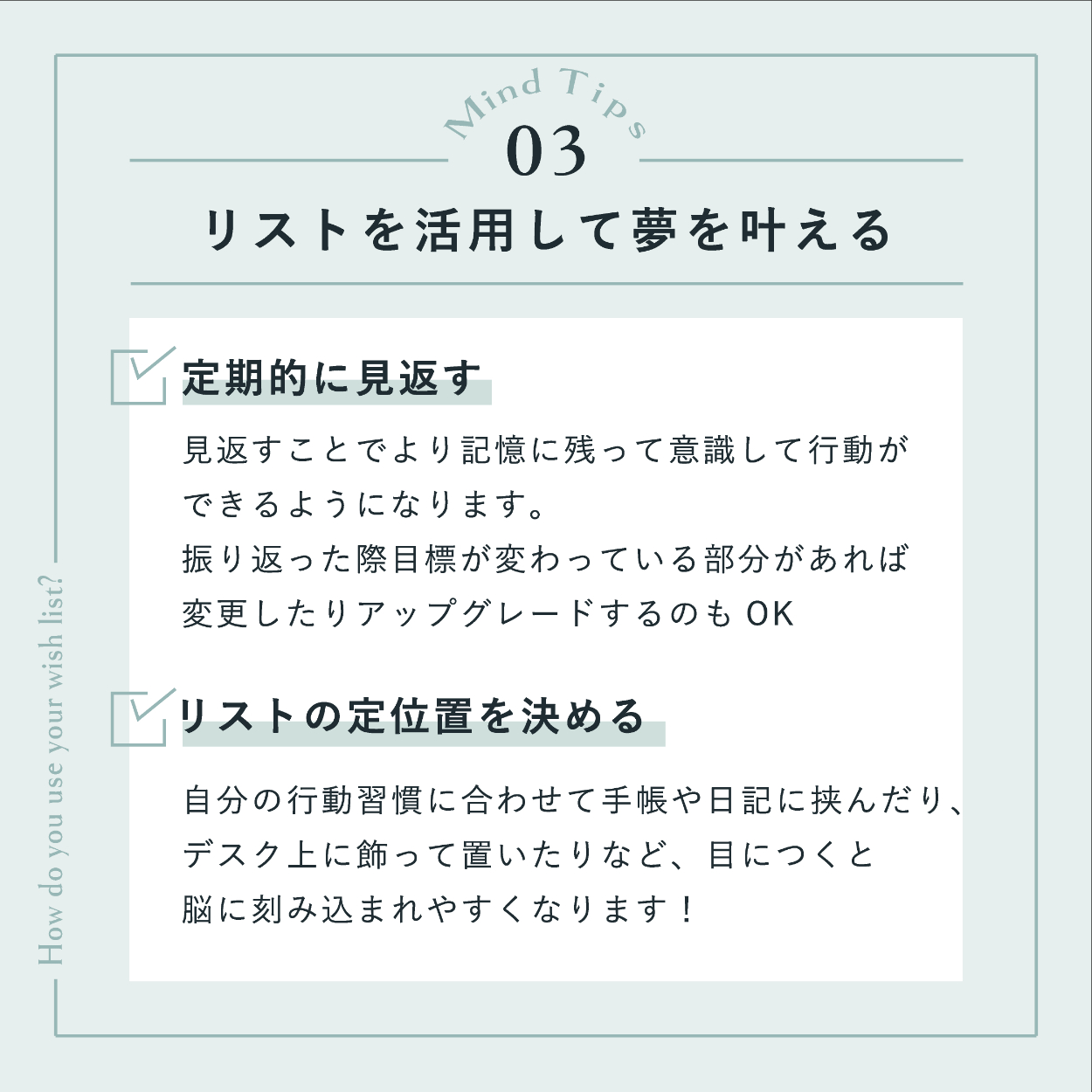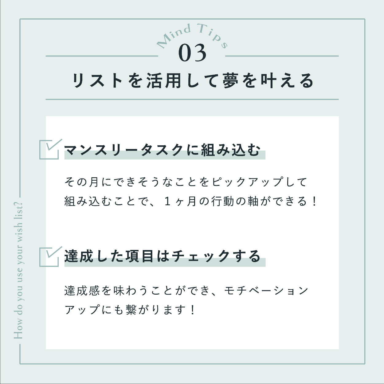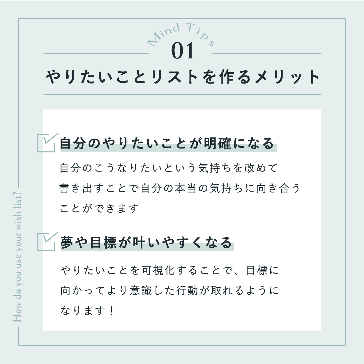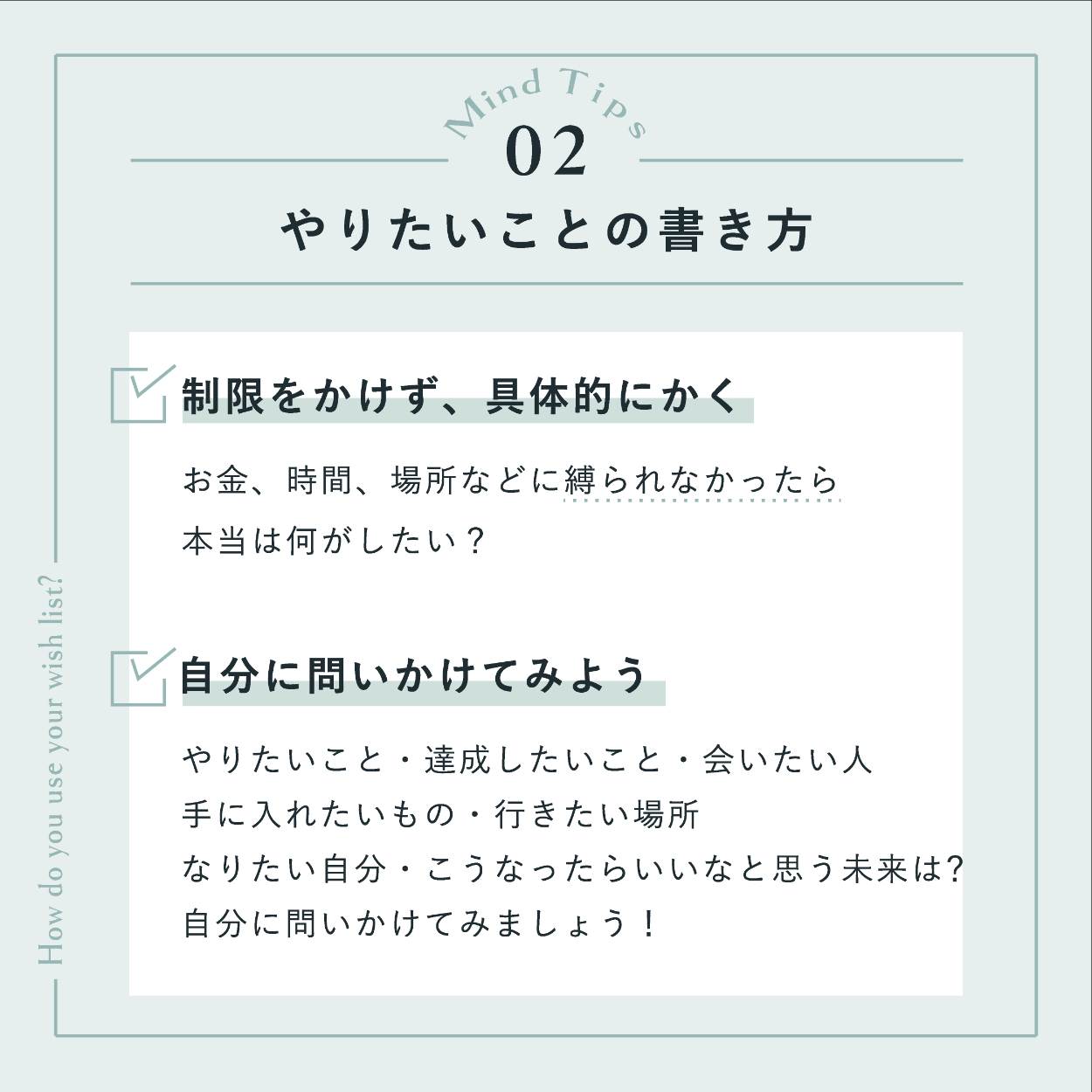 ・「やりたいことリスト」がテーマだったので、バインダーに挟んだメモをイメージしたデザインにしました。