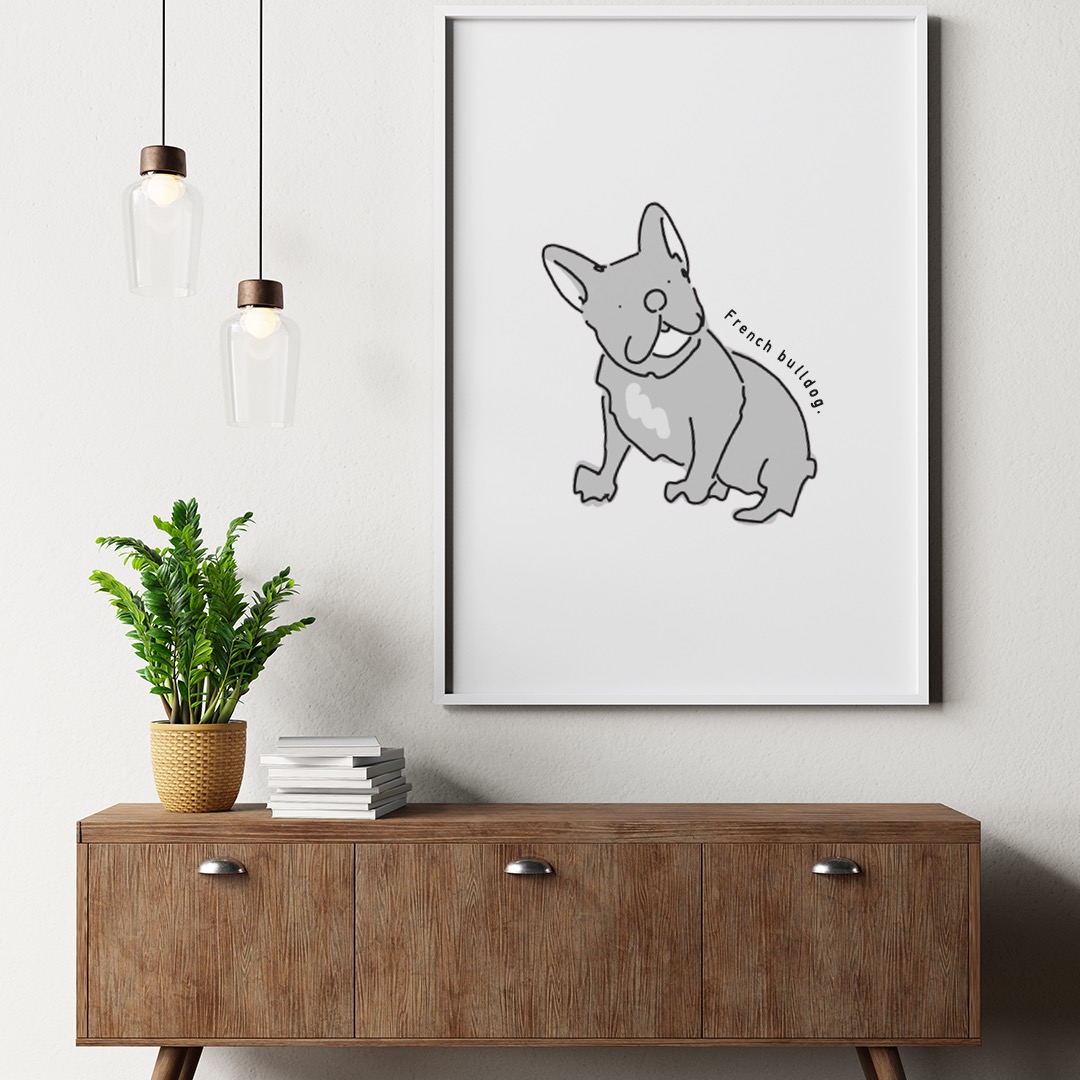 【イラスト】 nchos07 デザイナー OVERVIEW フレンチブルドッグのイラストを制作しました! ゆるっと描くことで、お洒落風なイラストに仕上げています。 ステッカー・ポスター・トートバッグ等、自分のお気に入りのツールに展開も可能です!