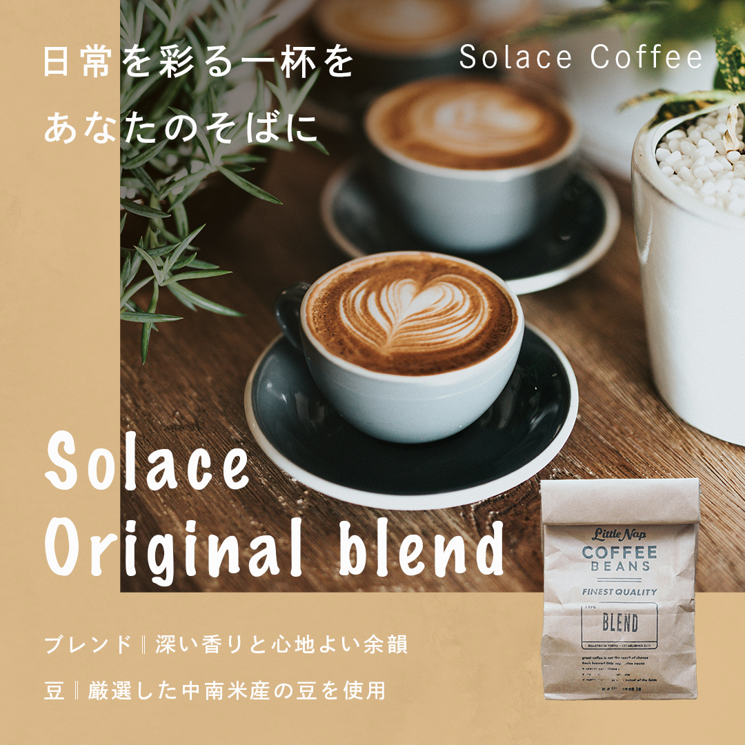 - 商品名「Solace Original blend」 を大きく配置し、視認性を確保しました。