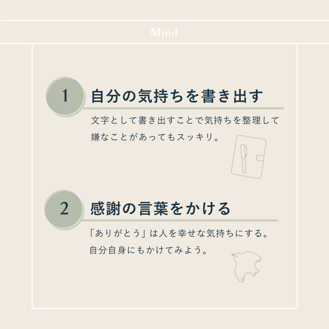 - 女性がターゲットであることと、内容が「ご機嫌に素敵な毎日を過ごす」ということだったのでベージュとグリーンで落ち着いた印象にしたこと。