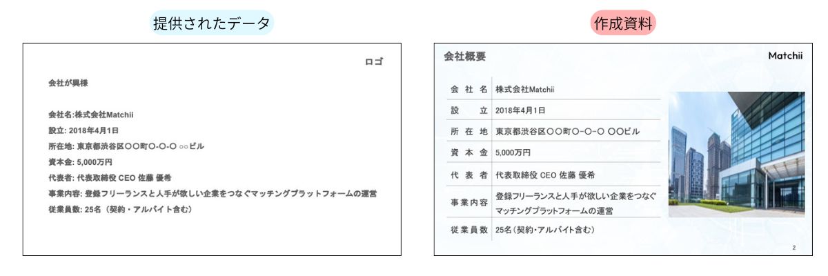 SHElikes PRO デザイナーでの課題。架空のクライアントから提供されたスライドと要望にあった情報を見やすく整理しデザインする。