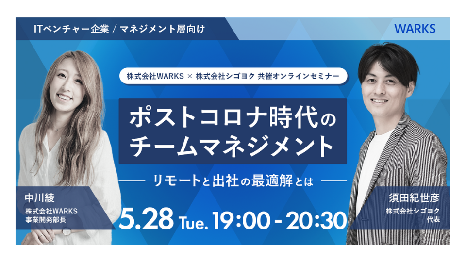 ・企業に対して新時代のワークスタイルコンサルティングを行う株式会社WARKSが、パートナー企業である株式会社シゴヨクと共同主催するオンラインセミナーを告知する