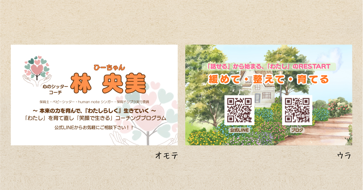 初対面でも安心感が伝わるよう文字の読みやすさと余白大切にし、覚えてもらいやすさを意識して制作しました。表裏でデザインを変えることでコンセプトの「緩めて・整えて・育てる」「RESTART」を表現しました。