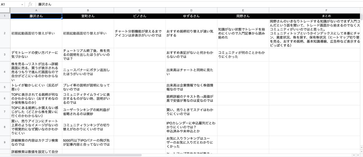 ここで抽出された課題は以前からメンバー間であがってた課題ともほとんど一致するのでした。この工程を踏んだことで、今回、何をどこまでやるべきか、が明確になって舵を切る方向性が定まった気がします。