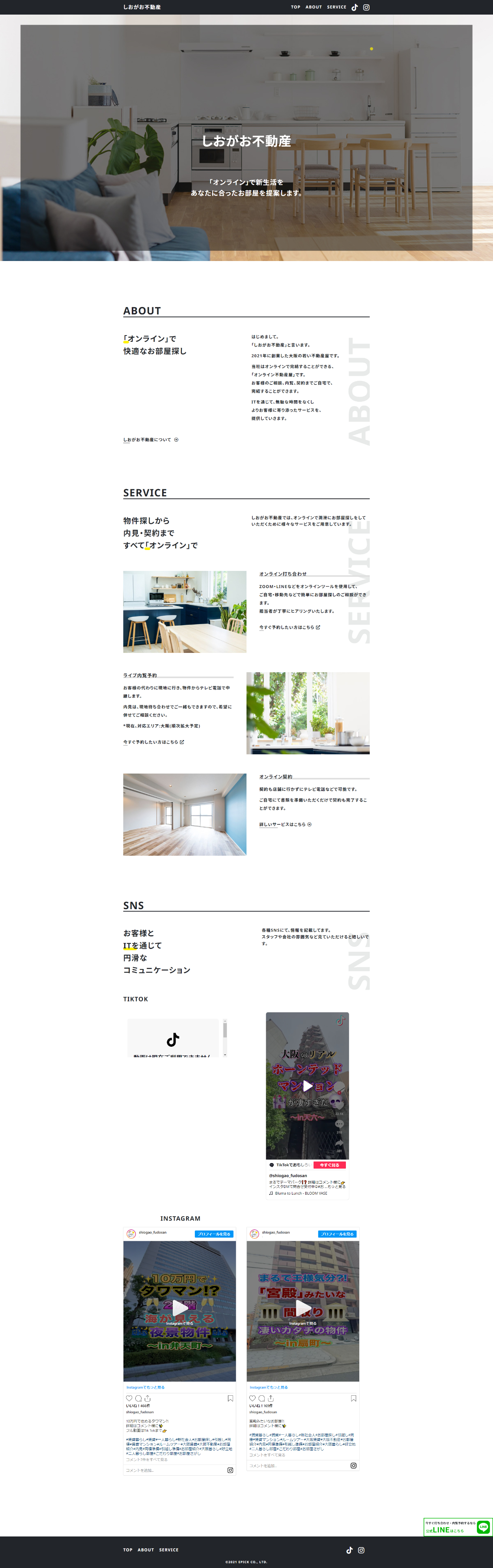 しおがお不動産 Mizutani Yusuke Webデザイナー OVERVIEW 大阪の不動産会社「しおがお不動産のコーポレートサイトの作成」 YEAR 2020 企画から納品まで一人で担当。WPの組み込みや情報設計まで行っている。 WEBSITE