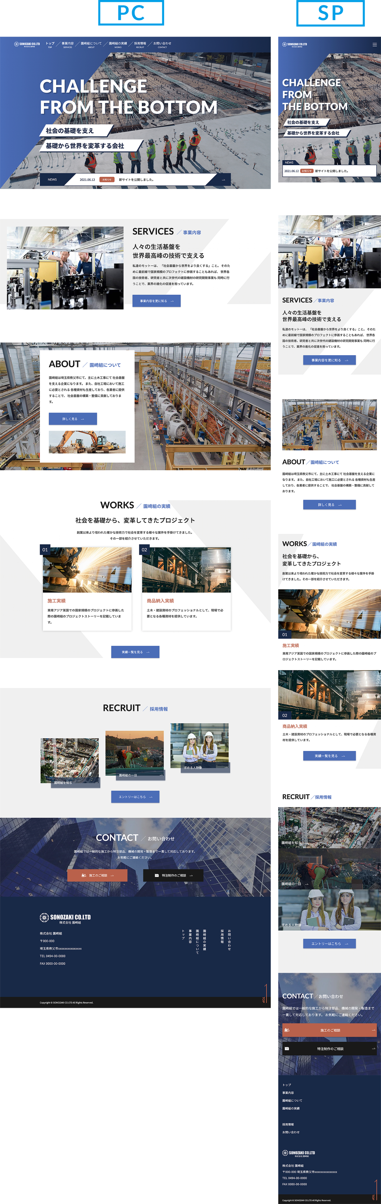 建設会社コーポレートサイト(Photoshop/コーディング)