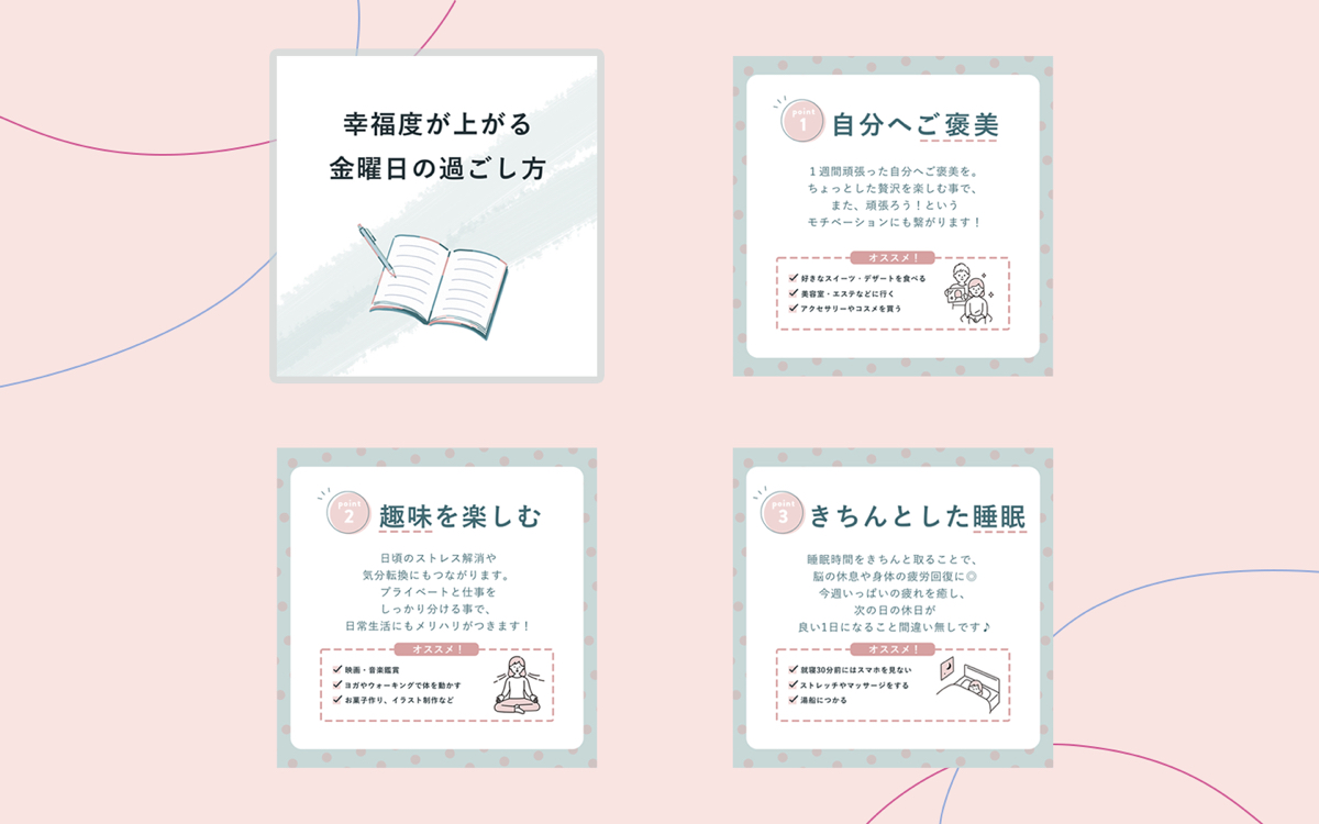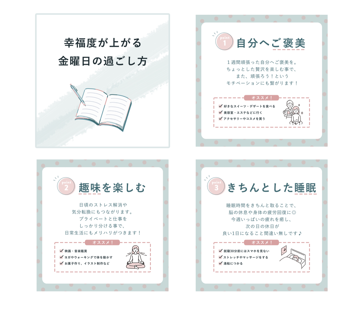 ・自分が普段からしている習慣や、日々の生活にも取り入れやすい内容に仕上げた。