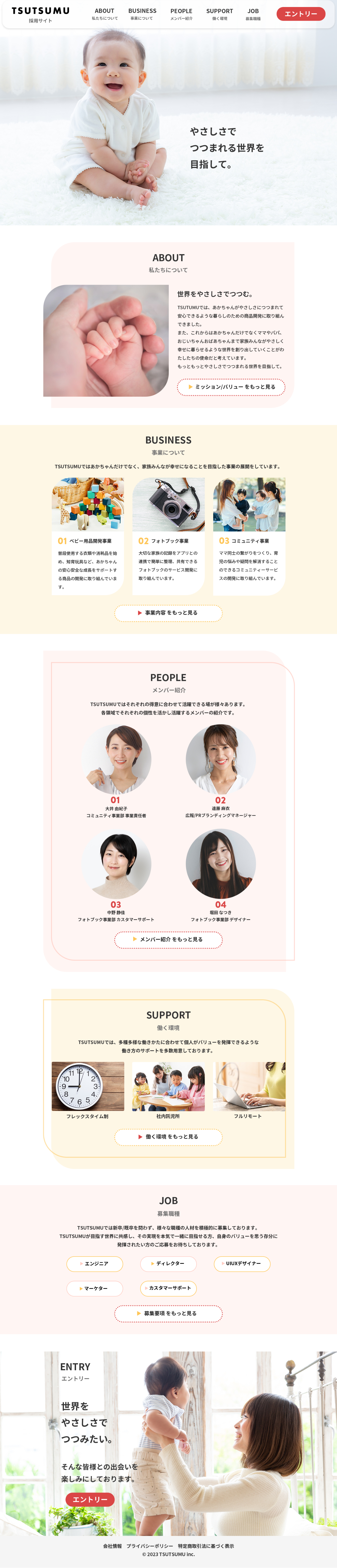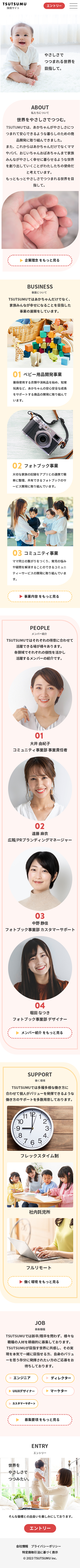SHElikes MULTI CREATOR COURSE designerで「TSUTSUMU」という企業の採用サイトのLPデザイン・コーディングに取り組みました。(2024.05)