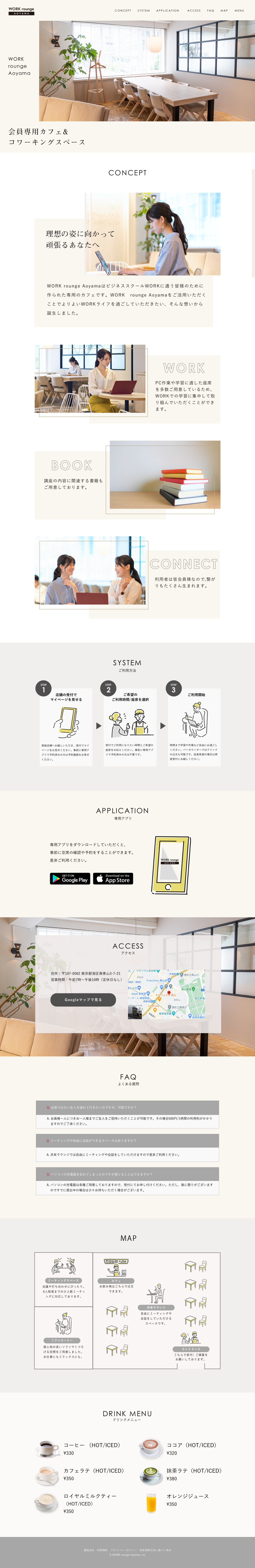 ビジネススクール「WORK」の会員限定コワーキングスペースをオープンすることになった。利用方法やアクセス情報を載せたWebサイトを作ってほしい。